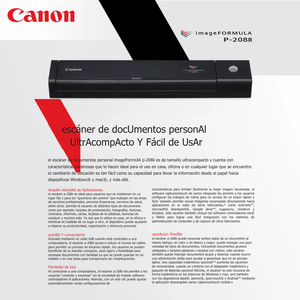 ¡Transformá tu forma de trabajar con el Canon P-208II y experimentá eficiencia y calidad en cada escaneo!